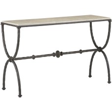 Currey & Company Boyles 42 inch Natural/Black Console Table The Boyles Travertine Console Table has a forged iron base in a ..